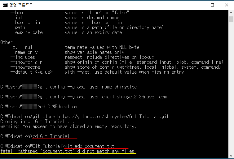 깃 에러(Git error) fatal: pathspec '파일명.확장자명' did not match any files. Ⅰ. fatal: pathspec '파일명.확장자명' did not match any files. * 임의의 텍스트파일을 만든 후 프로젝트로 추가하려..