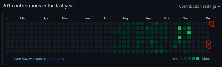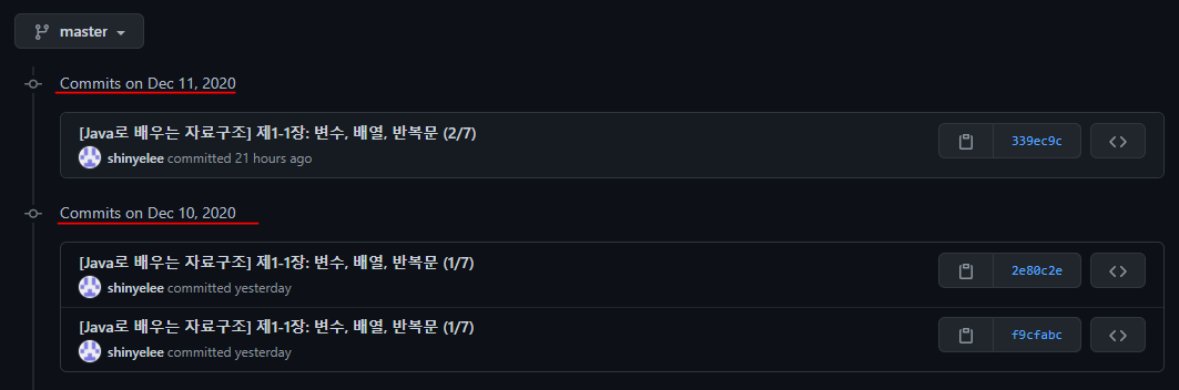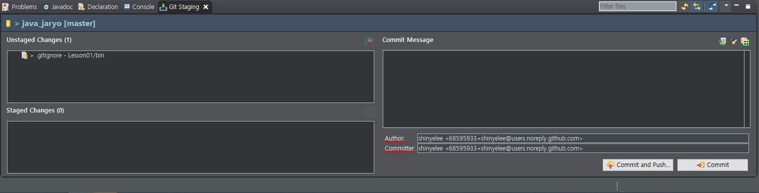 우측 상단에서 Setting 선택좌측 상단에서 Emails 선택여기에 등록된 이메일과 git config에 등록된 이메일이 다르면 이런 현상이 일어난다고 함Git CMD에서 git config --list를 입력하면 user.email을 알 수 있음. 확인해보니 깃허브와 메일 주소가 다름이클립스에서 Git Staging의 Author와 Committer를 확인해도 됨Git CMD에서 git config --global user.email 메일@주소 를 입력이클립스를 재실행해보니 Author, Committer가 바뀌어 있다!확인을 위해 다시 커밋 & 푸시여전히 잔디가 안 심김...