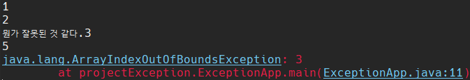 System.out.println("뭔가 잘못된 것 같다."); // 예외 퉁치기.