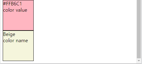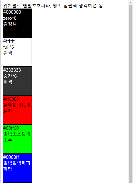 <div class="red">#ff0000<br>빨빨없없없없<br>빨강</div>