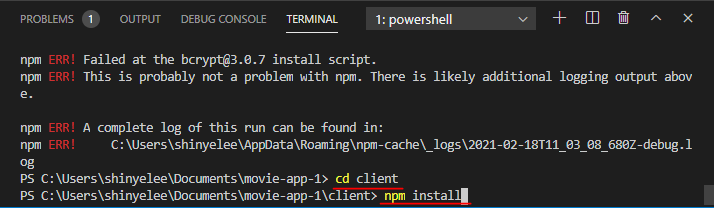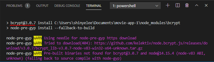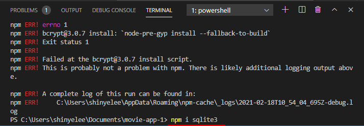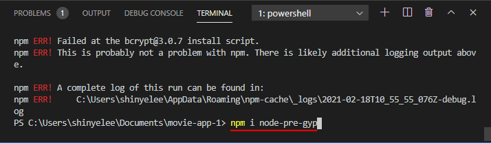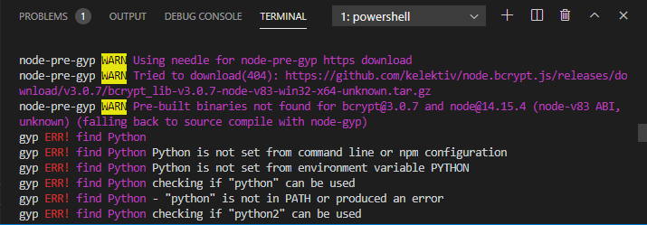 질문 - 노드 api 서버 npm install 시 발생하는 에러 gyp ERR! find Python gyp ERR! find Python Python is not set from command line or npm configuration gyp ERR! find Python Python is not set from environment variable PYTHON gyp ERR! find Python c