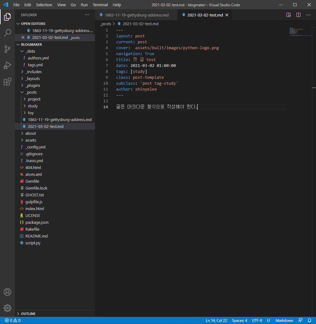 Jekyll 기반의 GitHub Page 생성(2) - 블로그 수정 & Publishing