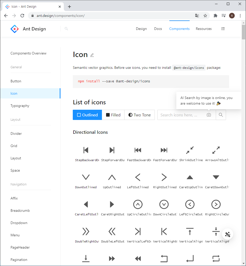 Warning: [@ant-design/icons] Should have `component` prop or `children`. 방법 2. ant-design icon, button 사용 ant.design/components/icon/#components-icon-demo-iconfont Icon - Ant Design Import icon..