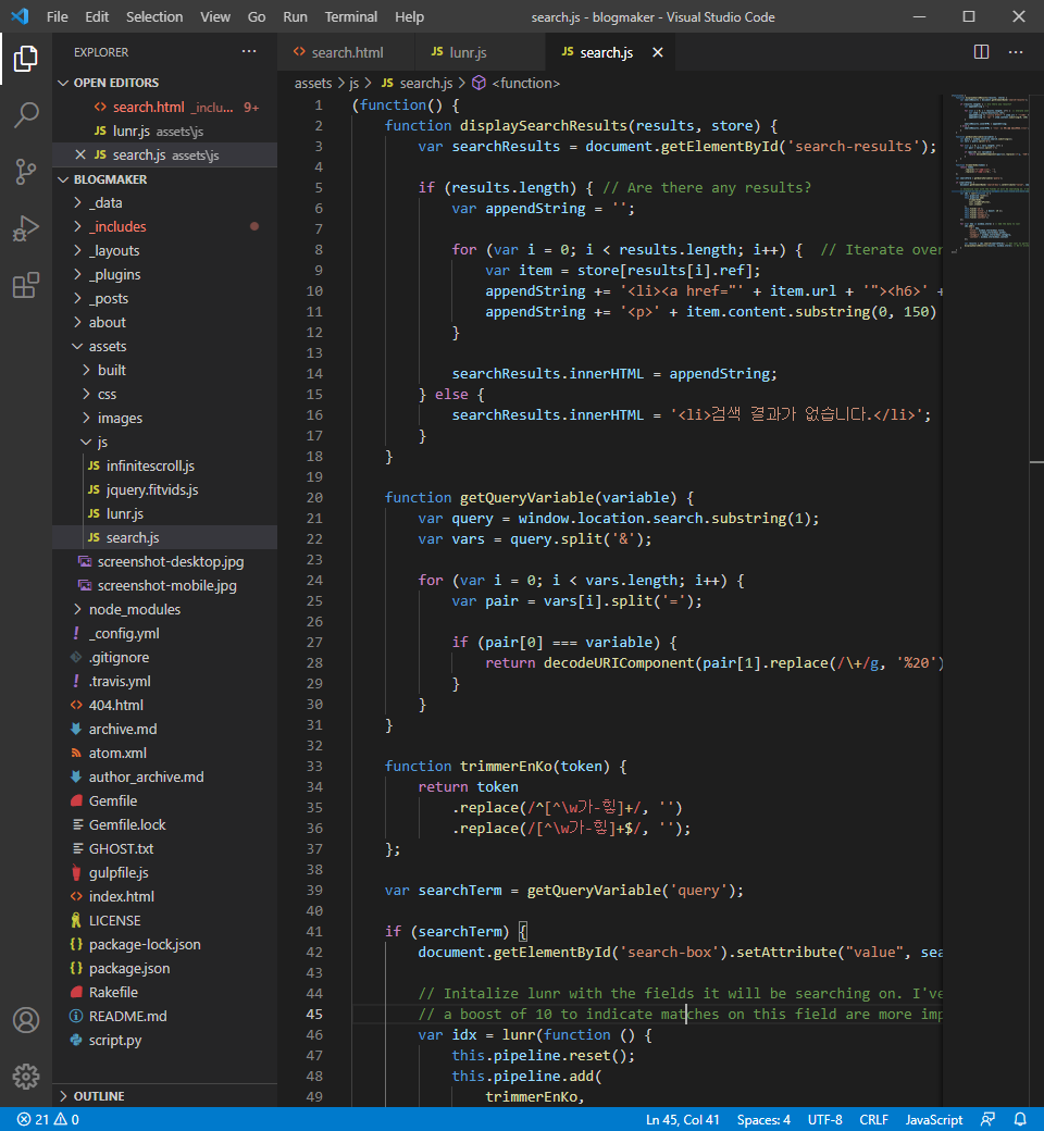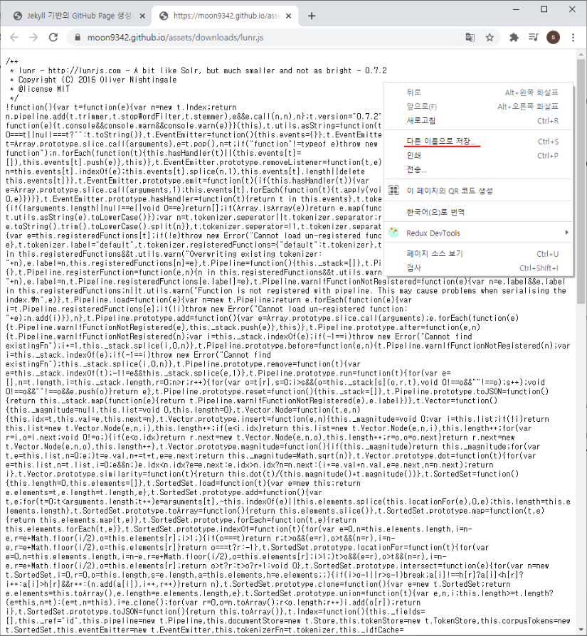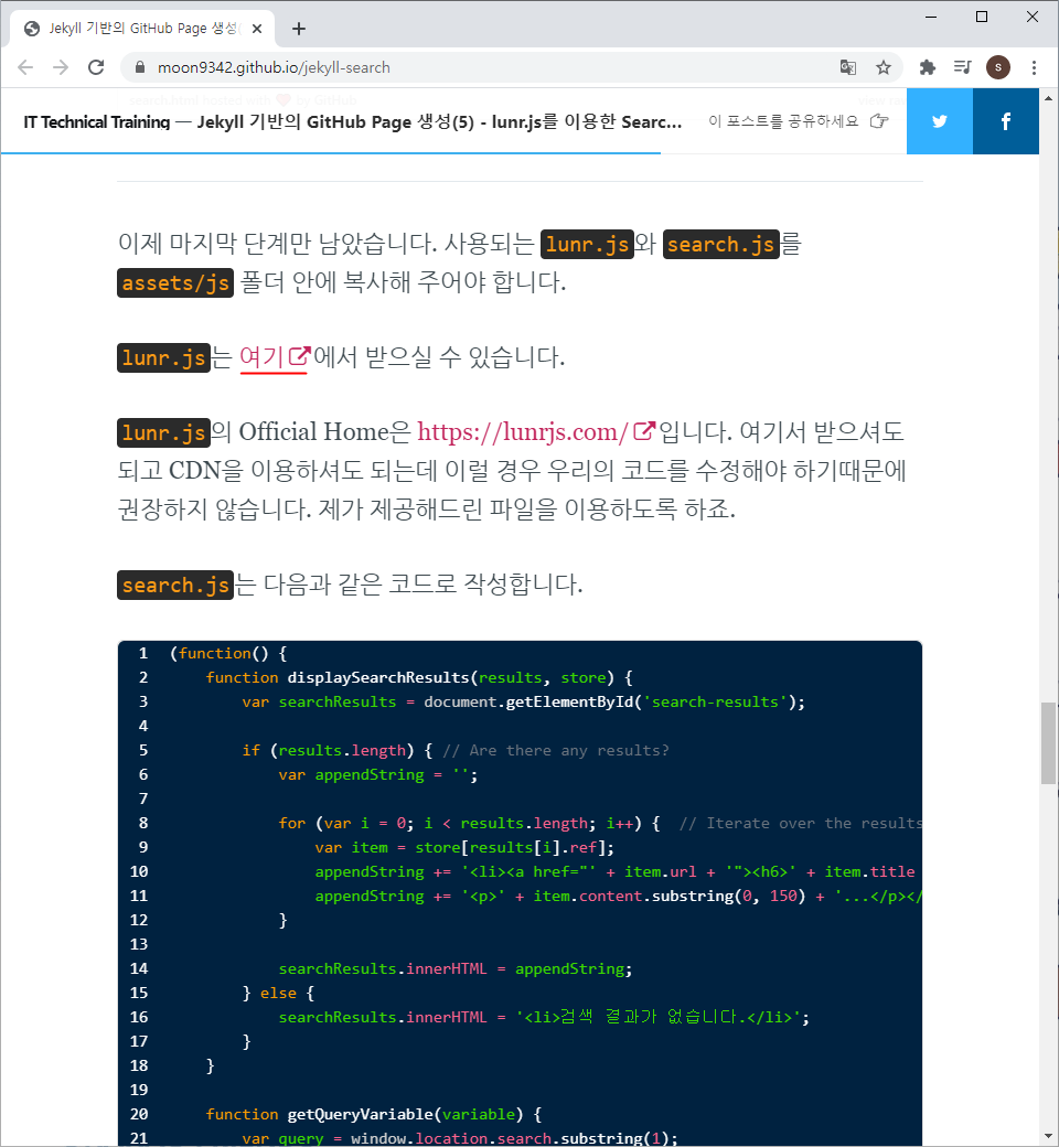 Jekyll 기반의 GitHub Page 생성(5) - lunr.js를 이용한 Search 기능 추가
