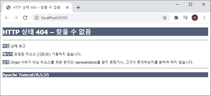요청된 리소스 [/]은(는) 가용하지 않습니다.