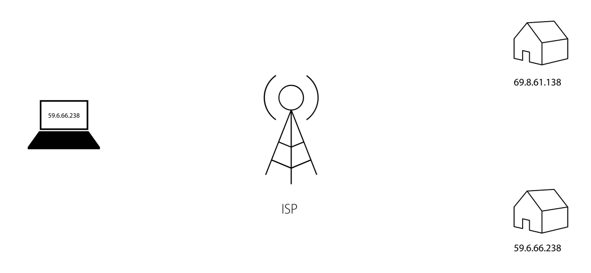 IP 주소는 컴퓨터(또는 인터넷을 사용하는 통신 기기) 자체에 부여하는 것이 아니라, 기기가 인터넷에 접속한 곳의 네트워크상 위치에 부여한다. 즉, 같은 노트북이라도 우리집 공유기에 연결했을 때의 IP 주소와 카페 와이파이에 연결했을 때의 IP 주소는 서로 다르다. 그러니까 '전화기-전화번호'의 관계보다는 '자동차-도로명 주소'에 가깝다(이것도 완벽한 비유는 아님).