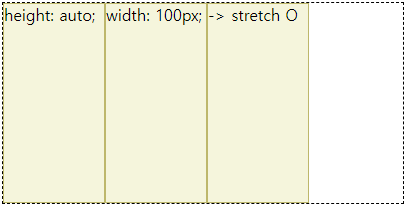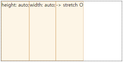 align-items 또는 align-content의 stretch가 적용이 안 되는 이유는box에 height가 지정되어 있기 때문이다.stretch는 height를 늘려주는 속성이기 때문에height를 auto로 설정하면 된다(width는 아무런 상관이 없음).