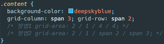 grid-column과 grid-row를 합치면 grid-area가 된다.