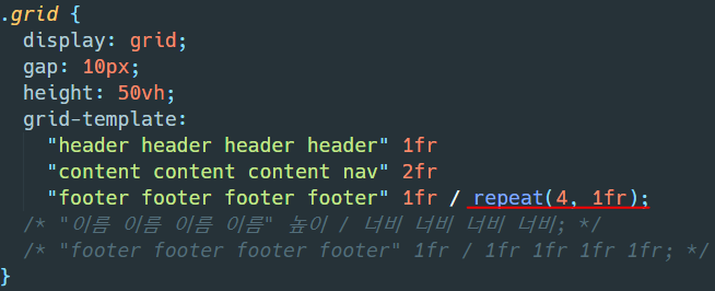 "footer footer footer footer" 1fr / 1fr 1fr 1fr 1fr;