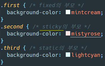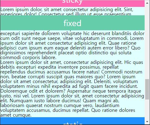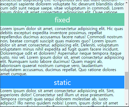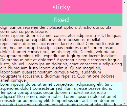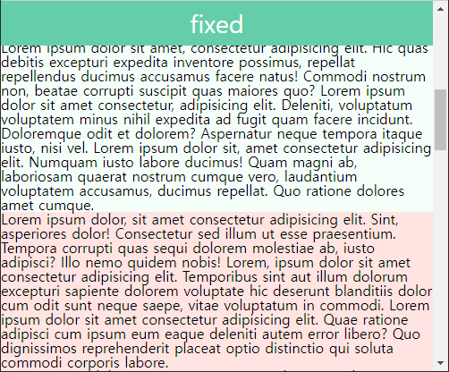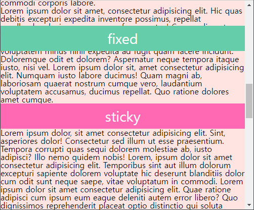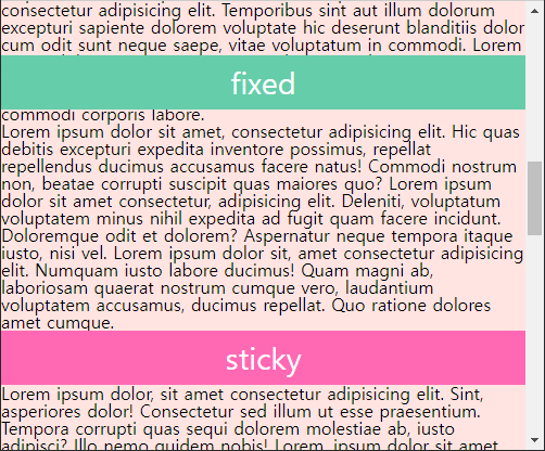 메인 내비게이션 바는 fixed를, 특정 영역 안에서만 움직이는 헤더는 sticky를 적용하는 게 좋다. 근데 어차피 sticky는 IE에서 못 쓰니까 웬만하면 fixed를 쓰자.