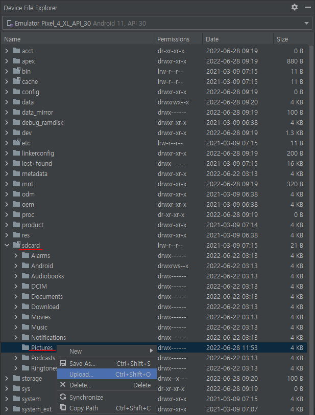[안드로이드 스튜디오] 안드로이드 에뮬레이터 사진첩에 이미지 파일 추가하기