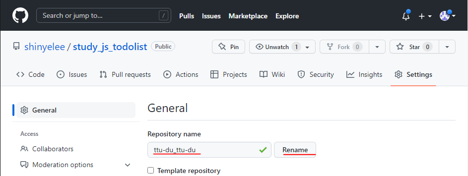 [Git] 깃허브 Repository 이름 변경하기