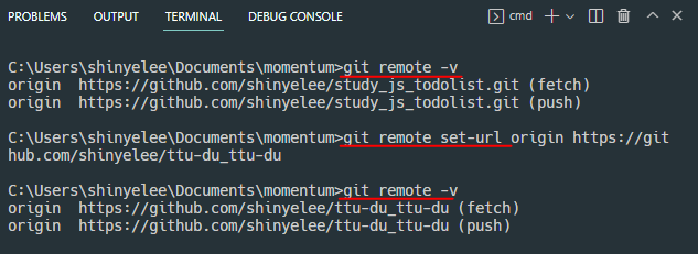 [깃/깃허브] 원격 저장소(리모트 레포지토리) 이름 바꾸기