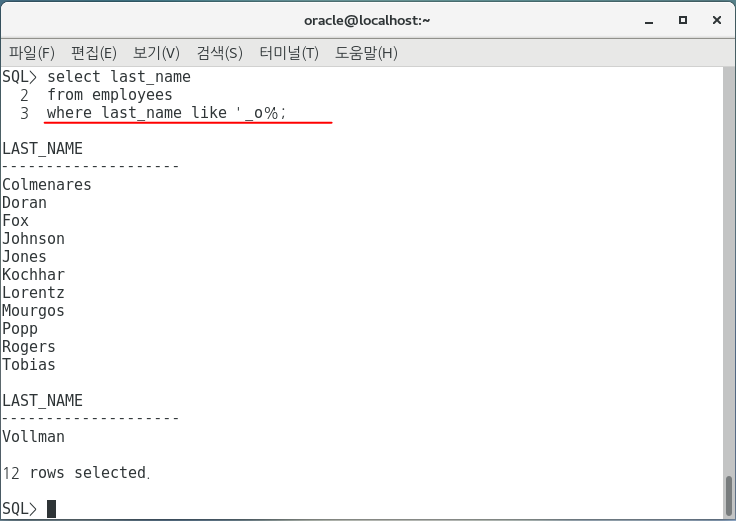 * _(언더바) : 문자 있어야 하는 자리(언더바 1개당 1글자).