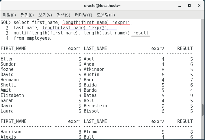 1. employees 테이블로부터 다음과 같이 출력하는 보고서를 작성하시오.
