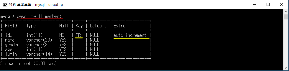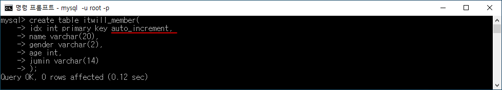 마. 테이블(itwill_member)과 필드(아래 내용 참고)를 생성하시오.