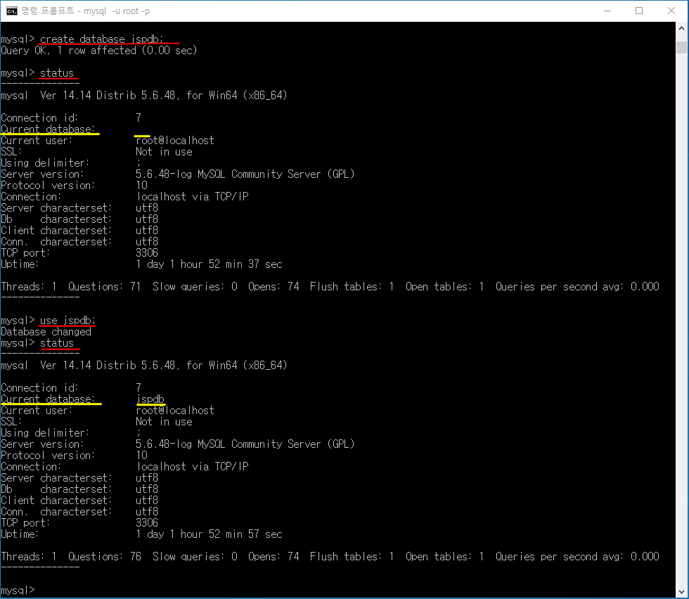 가. jspdb라는 이름의 DB를 생성 후 사용하시오.