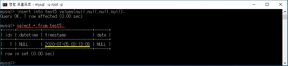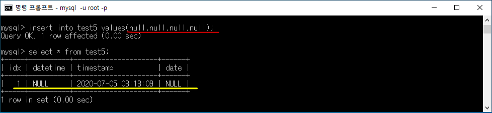 insert into 테이블명 (숫자필드, 문자필드, 빈값필드) values (숫자데이터1, '문자데이터2', null);